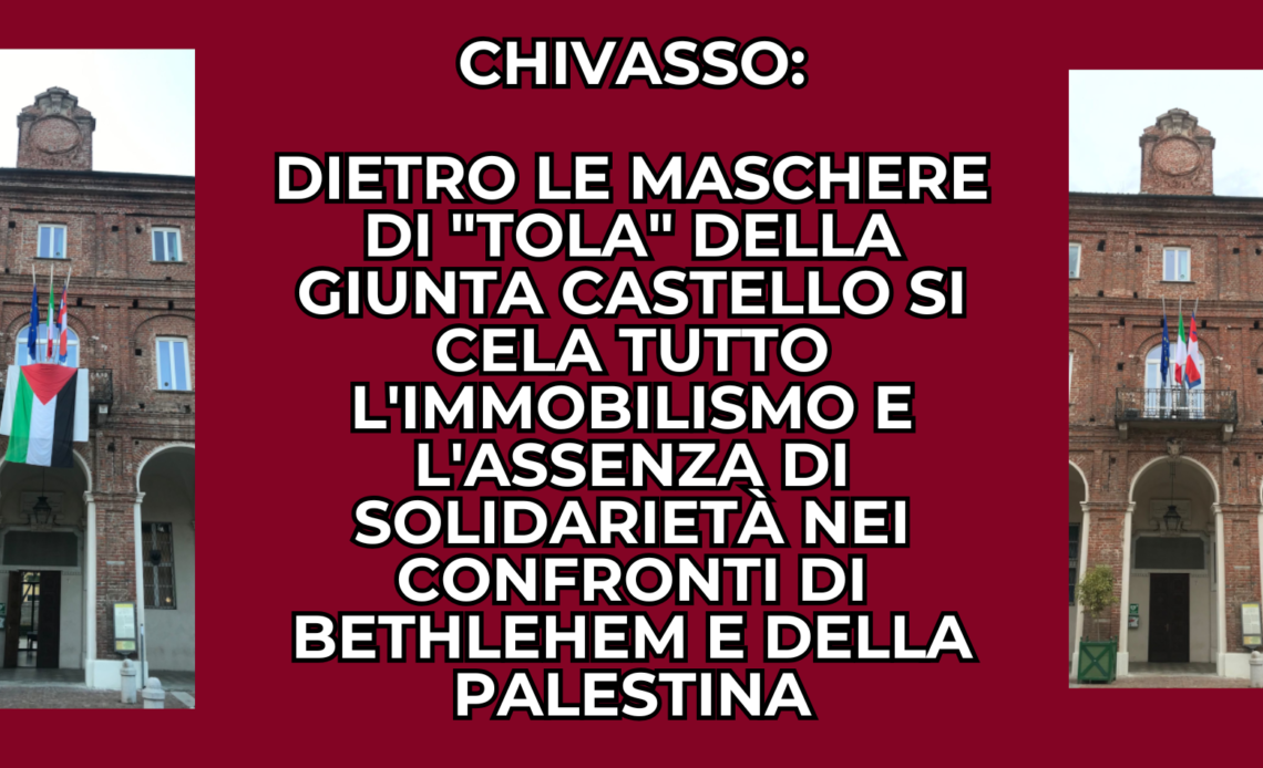 [TORINO] CHIVASSO: DIETRO LE MASCHERE DI “TOLA” DELL’AMMINISTRAZIONE CASTELLO SI CELA TUTTO L’IMMOBILISMO E L’ASSENZA DI SOLIDARIETÀ NEI CONFRONTI DI BETHLEHEM E DELLA PALESTINA