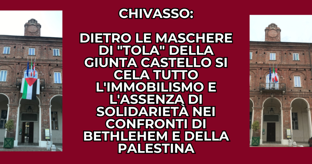 Nel contenuto il testo proposto da SE non può nemmeno definirsi la brutta copia di quello della petizione popolare. Un ordine del giorno arretrato sia nelle premesse che nelle richieste. Il consiglio, nonostante decine di migliaia di morti palestinesi ammazzati e Gaza rasa al suolo ancora non si esprimeva e, ancora adesso, dopo la falsa e già violata tregua imperialista proposta da Trump, fa fatica a esprimersi sul genocidio in corso e non condanna nettamente lo stato terrorista di Israele. Nel testo approvato non viene chiesta l’interruzione dei rapporti commerciali con Israele, non viene portata solidarietà alcuna alla città di Bethlehem gemellata con Chivasso, per cui, fra le istanze contenute nella nostra petizione, avevamo chiesto almeno 1.000 euro di finanziamento per un campo profughi in quella zona, e il sindaco Castello non risponderà alla lettera ricevuta dal suo omologo nel dicembre del 2023.