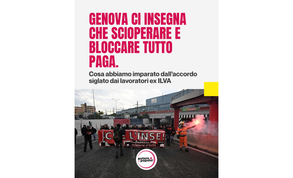 La vera vittoria dei lavoratori, oltre ad aver sventato la chiusura di un reparto importante, è quella di aver mostrato, sull’esempio dei portuali di Genova, che siamo deboli solo finché ci crediamo tali. Un movimento come “blocchiamo tutto” nato per respingere l’inerzia del Governo di fronte al genocidio dei Palestinesi, conteneva già in sé la ribellione a un malessere più vasto, come ci dimostrano oggi i lavoratori dell’ex Ilva.