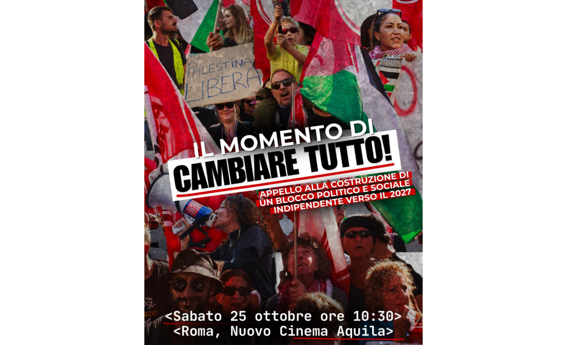 Noi vogliamo combattere questa sfiducia e far apparire in Italia una politica differente. Una politica che dia continuità ai movimenti ed evitare che vengano dispersi dalla repressione o dal riflusso, una politica che sappia interpretare i bisogni popolari, che combatta ferocemente Meloni ma che rifiuti anche un centrosinistra che non è in grado di fare un’opposizione degna, che è compromesso con tutti i poteri, europei, atlantici, fino a quelli di padroni e padroncini sui territori.