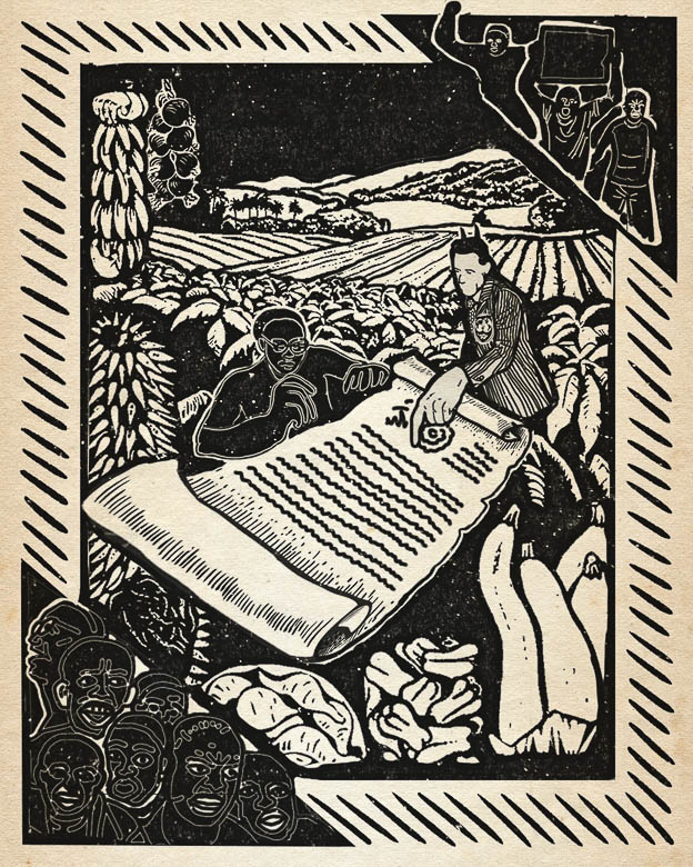 A Katende ho parlato con alcune persone che si aggiravano intorno a un piccolo negozio chiamato duuka (dal termine hindi dukan, portato in questa parte dell’Uganda dai commercianti indiani conosciuti in passato come dukwallas). In questo negozio ho incontrato un’anziana commerciante che attraversava spesso il confine con merci provenienti dalla Repubblica Democratica del Congo. Che tipo di merci? Di tutti i tipi, a volte anche diamanti. Si chiamava Ssuubi e parlava luganda. Ha detto qualcosa che ha fatto ridere Katende. Gli ho chiesto cosa fosse. Ha preso il mio taccuino e ha scritto quello che aveva detto: Akakonge ak’omu kkubo. Bwe katakukuba magenda, kakukuba amadda. Poi mi ha consegnato il taccuino su cui aveva scritto: “Se il piccolo ceppo d’albero sul sentiero non ti fa inciampare all’andata, ti farà inciampare al ritorno”. Sospetto che Ssuubi si riferisse al contrabbando e alle guardie di frontiera. Ma forse era solo un riflesso della vita, con il destino al centro della sua povertà nonostante fosse coinvolta nel contrabbando di diamanti, così poco costosi qui ma così costosi una volta arrivati nei Paesi del Golfo e ad Anversa e, infine, nelle gioiellerie di lusso di tutto il mondo.