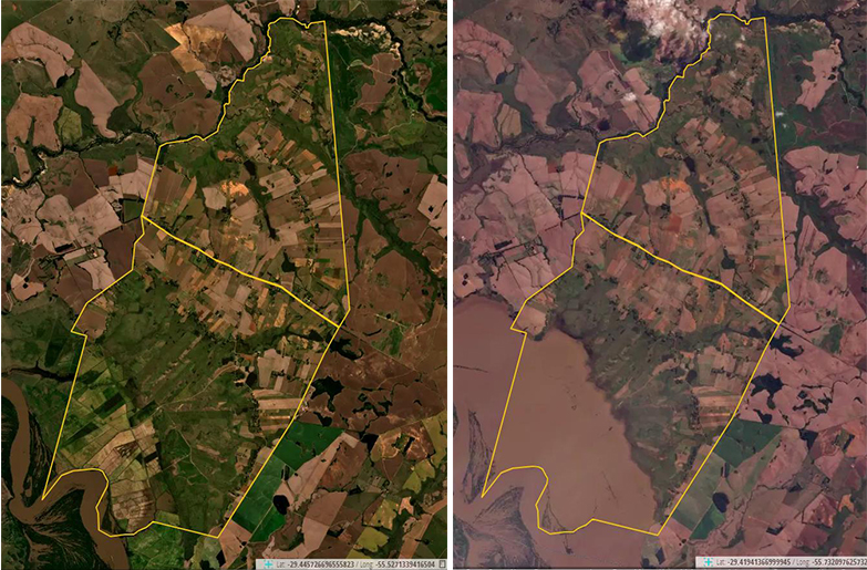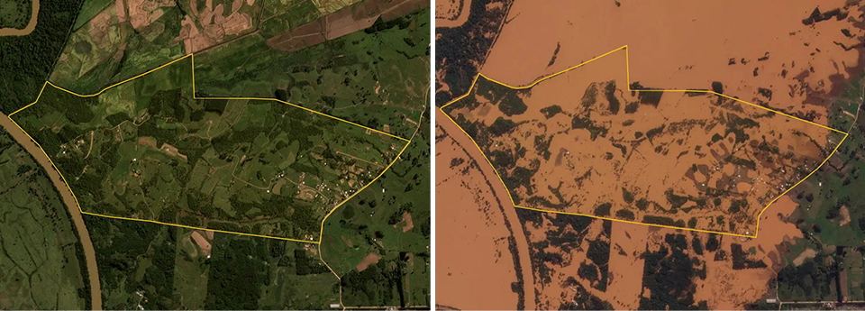Le immagini di questa newsletter, tratte da un rapporto dell’Istituto Nazionale di Colonizzazione e Riforma Agraria (INCRA) del Brasile, che utilizza le immagini satellitari del Programma M.A.I.S. Brasile. Programma Brasile M.A.I.S. del Ministero della Giustizia e della Sicurezza Pubblica, mostrano alcune delle terre dell’MST prima delle inondazioni – terre ora inondate dall’acqua delle alluvioni che ha infiltrato materiali tossici nel terreno. L’MST ha concentrato i suoi sforzi di soccorso non solo sui propri membri, ma anche sulla popolazione della regione che ha perso tutto di fronte all’innalzamento delle acque da cui non può fuggire. Se desiderate aiutare l’MST nei suoi sforzi di soccorso per l’alluvione e per la ricostruzione degli insediamenti, potete farlo qui.