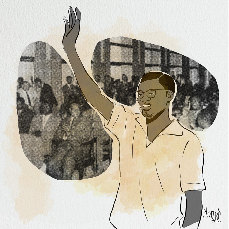Giovani artisti di talento hanno lavorato intere settimane per realizzare le illustrazioni che compaiono nel dossier e in questa newsletter, frutto della collaborazione tra il nostro dipartimento artistico e il collettivo di artisti del Centre Culturel Andrée Blouin di Kinshasa. Vi invitiamo a leggere il nostro quarto Tricontinental Art Bulletin per saperne di più sul loro processo creativo e a guardare il video sugli Artisti per la sovranità congolese, realizzato da André Ndambi, che introduce il lavoro degli artisti.