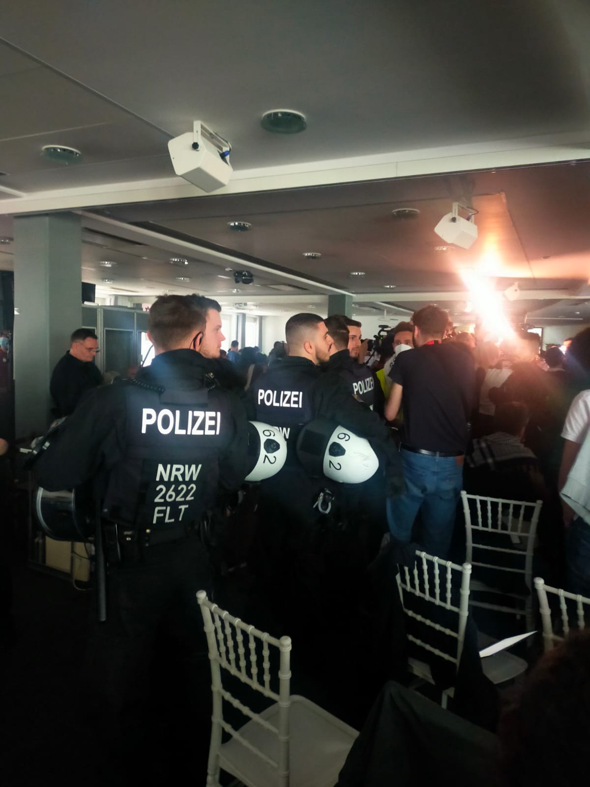 Già nelle settimane precedenti alla conferenza le autorità tedesche avevano annunciato di controllare con particolare attenzione che questa iniziativa non diventasse un megafono di “antisemitismo e incitazione all’odio”. Una precauzione incomprensibile visto che gli organizzatori si sono sempre definiti antirazzisti e hanno condannato da sempre ogni forma di antisemitismo. Diverse iniziative di avvicinamento e autofinanziamento erano poi state impedite con la scusa che “non era garantita la sicurezza” (di chi, non si capisce). La repressione ha colpito in particolare gli ebrei antisionisti, prima con il blocco del conto corrente dell’associazione Jüdische Stimme für gerechten Frieden in Nahost (Voce ebraica per una pace giusta in Medio Oriente), una delle associazioni promotrici della conferenza, poi, al congresso stesso, con l’arresto di uno dei loro rappresentati più riconosciuti.