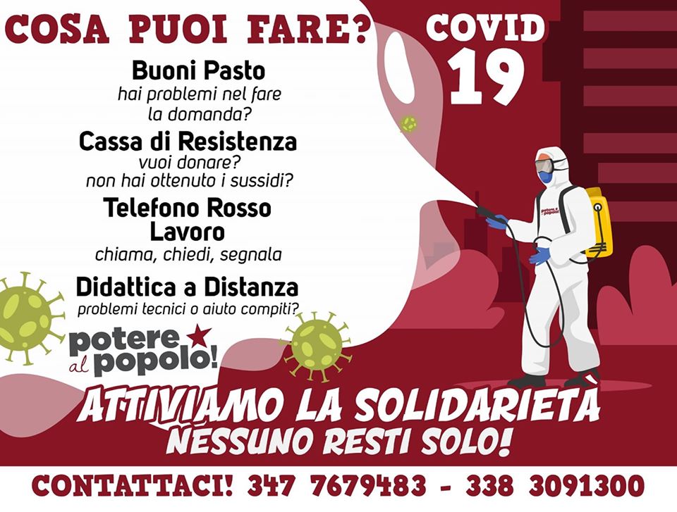 In questa crisi epocale siamo in prima linea nel sostenere la sanità pubblica contro quella privata, nel difendere il diritto alla salute dei lavoratori contro i profitti degli industriali, nel pretendere un reddito di quarantena per tutti.