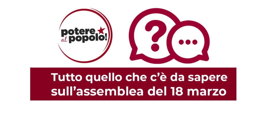 Domenica 18 marzo si terrà a Roma, al Teatro Italia, una grande assemblea nazionale del movimento “Potere al Popolo!” (qui l’evento: https://www.facebook.com/events/183865582229150/).