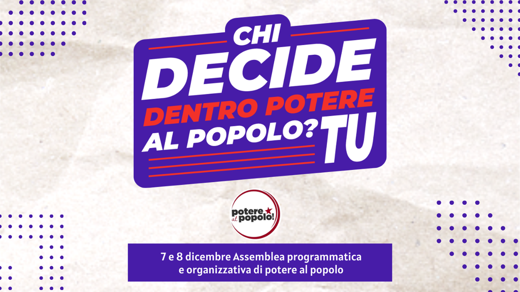 Il 7-8 dicembre 2024 i delegati delle Assemblee territoriali e dei gruppi d’azione di Potere al popolo! discuteranno a Roma il programma politico di Potere al popolo! e la struttura organizzativa interna. Per partecipare è importante aderire entro il 30 novembre. Sintesi riepilogativa delle date in fondo al post.